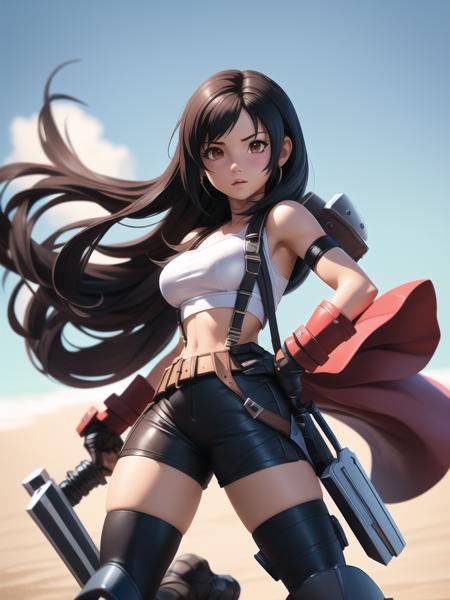 delicate colorful 3D PVC model of (tifa lockhart in final Fantasy 7 series),(long black hair), mini short with coat style clothes, detail hair, fluttering in the wind , sharp details, details face, detail eyes , intricate details, ultra-realistic,digitally enhanced,3d reference background, 8k resolution, unapologetic grit, overexposure,sharp focus , UHD, 8K